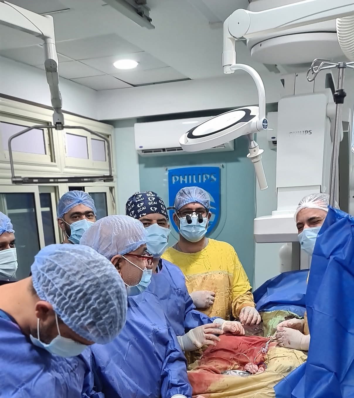 عميد أطباء القلب يشارك أبناءه بمعهد القلب اليوم فى عملية تركيب صمام أورطى