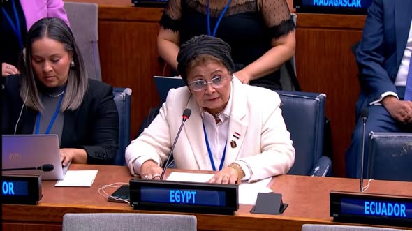 وأكدت نائب الوزير في مستهل كلمتها انضمام مصر إلى البيانين المقدمين باسم مجموعة الـ77 والصين، وباسم المجموعة العربية. وأشارت إلى أن دورة هذا العام تكتسب أهمية خاصة بتركيزها على نقطة التلاقي بين الديناميات السكانية والتكنولوجيا والبحث العلمي لدعم التنمية المستدامة.