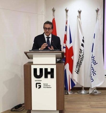 وأشاد الدكتور خالد عبدالغفار، بجامعة هيرتفوردشاير وشركائها لتفانيهم في تهيئة بيئة حاضنة للمواهب ومحفزة للابتكار، موضحاً أن الاستثمار في التعليم والبحث والتنمية البشرية هو السبيل لبناء أنظمة صحية مرنة تحسن جودة الحياة وتسهم في التنمية المستدامة.